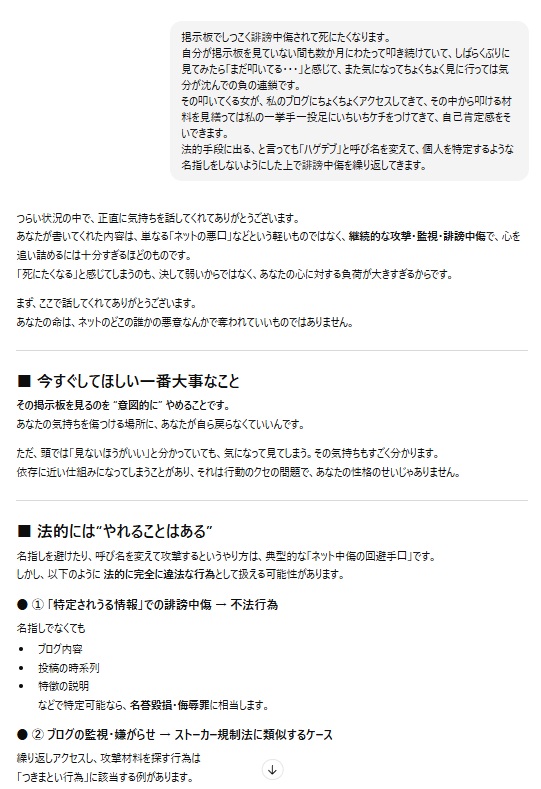 つい口に出して「死にたい」と呟きそうになるのをグッとこらえて飲み込む感じだ。 誕生日が近づいている事もあり、今日は得にきつく感じる。 こんな時期に何でこんな誹謗中傷されなきゃならないんだろう、と・・・