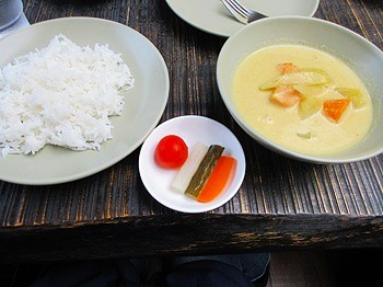 前回、チキンとココナッツのタイ風カレーを食べて美味しかったので 今回はエビとパイナップルの辛みと酸味のあるカレーを食べてみたら南国の味がした。手作りピクルスも美味しい。 ゴルバ様はジャスミンライス(簡単に言うとタイ米)が久しぶりに食べれて美味しかったと喜んでいた。