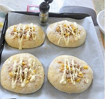 ツナ缶とコーン缶があったのでこれで総菜パン作ろう。 ツナは油分水分を切って、コーンも水分を切ってキッチンペーパーでよく拭きマヨとハーブソルトで軽く味付け。 マヨネーズはカロリーハーフ ( ̄▽ ̄)b 最後に粗びき黒コショーを少々。