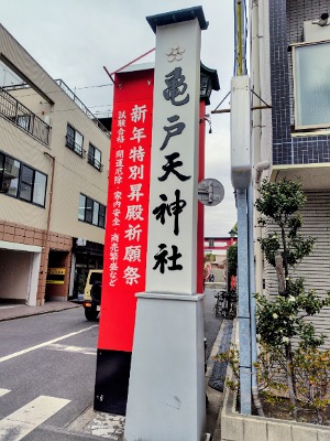 で、翌日。 前から行きたかったとの例のヒトのご要望で、亀戸天神へ。