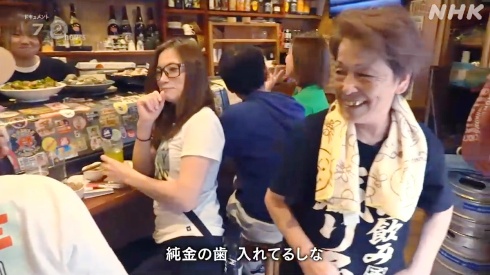 大阪市西成区のカラオケ居酒屋に居た79歳の右側の女性は、純金の歯を入れているとのことでしたが、、、 本当に純金だと、柔らか過ぎて、歯の修復物には向いていないように思うのですが。。。