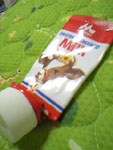 甘い物が食べたくなって冷蔵庫を開けたらこの前買った練乳ちゃんが居た。 「おぉ・・・練乳!」 手に取り、フタをあけ、口をつけた。 もう私は自分を止める事は出来なかった・・・・ ![]() 空っぽ。 ごちそうさまでした! 美味しかったーーーーーー♪♪♪ でももっと濃厚でもっと甘くてもいいのに。 |