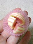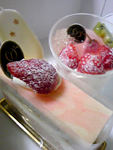 右隣の席のシノラーが、3時のおやつに高野の美味しいチョコをくれた♪ そのチョコに思いっきり嵌ってしまった私。 会社帰りにトゥトゥンを無理矢理連れて西武のデパ地下に入ってる高野へ。 合計3袋ゲット〜☆ 一番のお気に入りは「フルーツチョコレート」っていうヤツ。 ちっちゃいチョコがいーーーっぱい入ってるの。 超美味しいんだ〜〜〜♪ 帰り道に、買った中で食べた事の無い紅茶のチョコをトゥトゥンと味見しようと思って1人1個づつ手に持って歩いていた。 袋を開けて、ニオイを嗅ぐ。 「?」 微妙に分かり辛い。 またもやニオイを嗅ぐ。 その瞬間2人同時に 「あっ鼻につけちゃった!!」 何この2人同時っぷり。 どんだけニオイ嗅ぎたいんだ(笑) 帰ってから買ったチョコの半分をたいらげた。 勿論紅茶のチョコも。 そしたらお腹痛くてさ(汗) 私、メーカーに限らず紅茶飲むと女性的な腹の痛みが走るんですよ。 紅茶チョコ食べてもやっぱ痛くなったか・・・ 紅茶大好きなんだけどな〜っ(泣) |