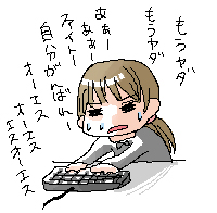 ディスペンサーで自分のマグカップにお湯を入れていた。 じょぼじょぼじょぼじょぼー 溜まったので取ろうと近づいた瞬間! チョボボボンッ☆ 残尿感でも感じたのか、ディズペンサーの野郎いきなり少量のお湯を出してきやがった! そのお湯は思いっきり跳ね上がり、私の左足の甲&指に熱湯が降り注がれた! 「あっち・・・・ぃ」(あまりの熱さに途中で声が小さくなる) 近くに居たキムニィ&ミューラさんが何事かと。 「お湯が・・・お湯が・・・足に・・・あっちいのですよ!」 少量かと思ったら、何気に結構お湯びたしでさ(汗) その後結構な時間ヒリヒリしてた。 危ないよー!ディスペンサー君! |